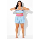 Pantalones Cortos De Cintura Media Con Estampado Floral Azul Para Mujer