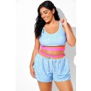 Top De Bikini De Patchwork Con Cuello Redondo Y Flores Azules