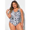 Traje de baño de una pieza elegante con estampado floral en blanco y negro