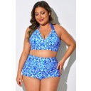 Top de bikini con cuello en V y lazo floral en color azul porcelana