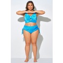 Braguita de bikini azul de talle alto con cordón ajustable en los laterales