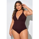 Traje de baño de una pieza de tela cómoda color marrón sólido