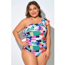 Traje de baño enterizo de un solo hombro con volantes y tirante desmontable