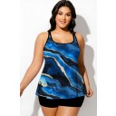 Top de tankini con cuello redondo, estampado azul y detalles dorados jaspeados