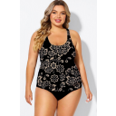 Top tankini tipo blusón con espalda cruzada y estampado floral dorado