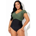 Green & Black Gathered Ruffle Sleeve One Piece Swimsuit