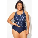 Top de bikini con espalda nadadora y lunares en azul marino y blanco de talla grande