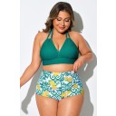 Top de bikini con cuello en V y lazo en color verde malaquita