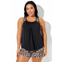 Top tankini con espalda nadadora y costuras con estampado de leopardo y negro