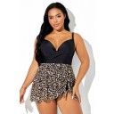 Traje de baño de cintura alta con sujetador de alambre acolchado de malla con estampado de leopardo