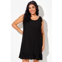 Vestido playero negro sin mangas con volantes y espalda abierta