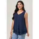 Top informal holgado con cuello en V sin mangas y en capas