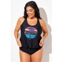 Top tankini tipo blusón con espalda nadadora y tirantes anchos con estampado de isla