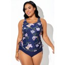 Top de tankini con espalda cruzada y sujetador incorporado con estampado floral multicolor