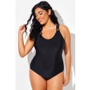Traje de baño de una pieza negro con escote en V y espalda cruzada