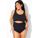 Traje de baño de una pieza negro con aberturas delanteras y traseras