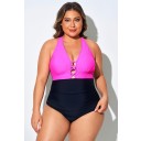 Traje de baño de una pieza rosa y negro con escote en V profundo