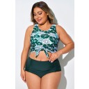Top de bikini corto anudado con estampado floral verde y blanco