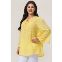 Blusa Amarillo Cuello Anudado Manga Larga de Talla Grande