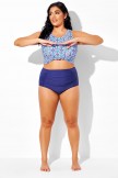 Top de Bikini Azul Marino de Escote Redondo con Tiras Ajustables