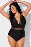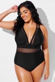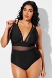 Traje de baño de una pieza sexy con escote en V profundo y detalles de malla