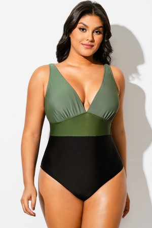 Traje de Baño de Una Pieza con Escote en V y Bloques de Color Verde30,99 €