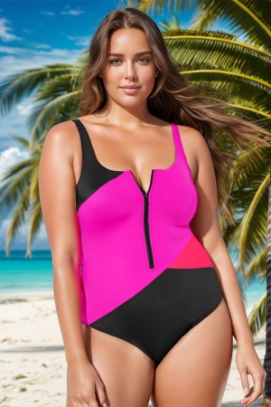 Traje De Baño De Una Pieza Negro Y Rosa Cremallera Frontal Con Bloques De Color38,99 €
