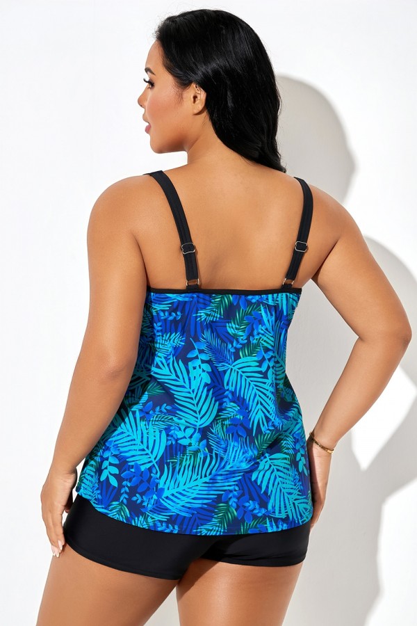 -27%REBAJATop de Tankini de Talla Grande Cian de Malla con Floral Estampado
