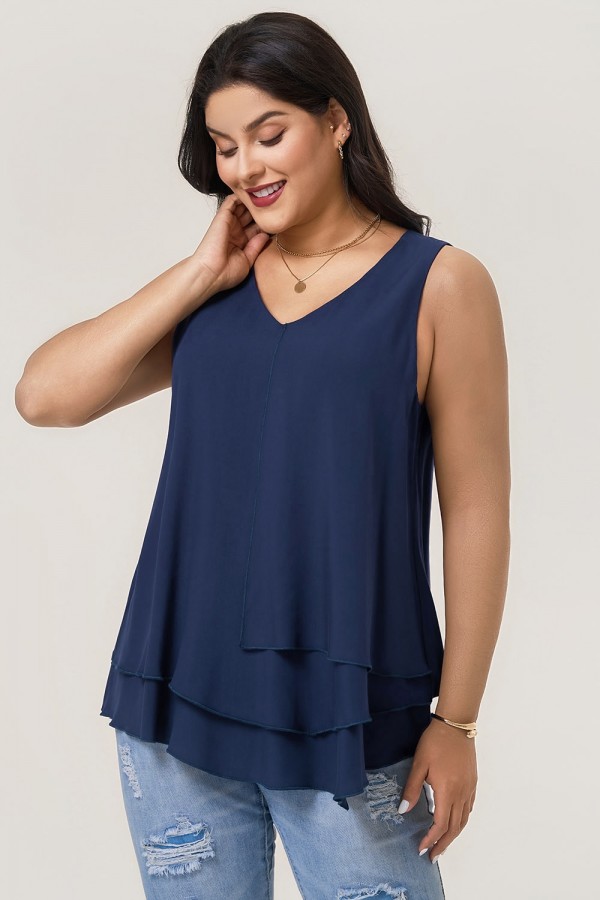 -40%REBAJATop Tirantes Negro de Talla Grande V-cuello sin Mangas