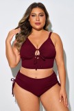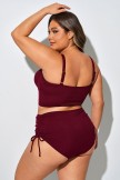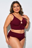 Traje de Baño Corto Rojo Vino Cintura Alta