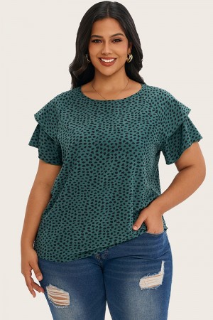 REBAJABlusa Cuello Redondo y Mangas de Corte Fluido con Leopardo Estampado