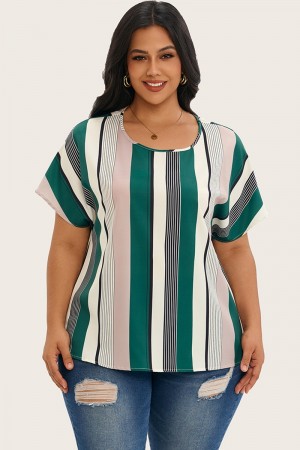 Camiseta informal con cuello en V y manga de murciélago a rayas verde14,99 €