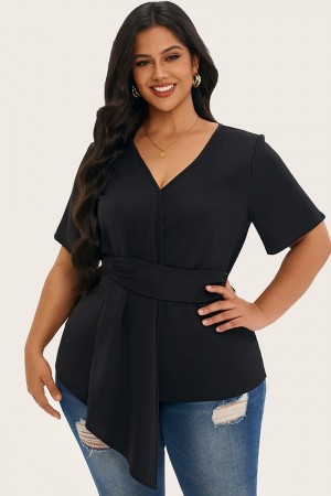 Camiseta negra lisa con dobladillo asimétrico y cuello en V26,99 €