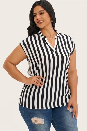 Blusa con manga de murciélago y cuello con muescas con estampado de rayas17,99 €