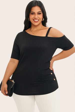 Camiseta fruncida con cuello asimétrico negro liso19,99 €