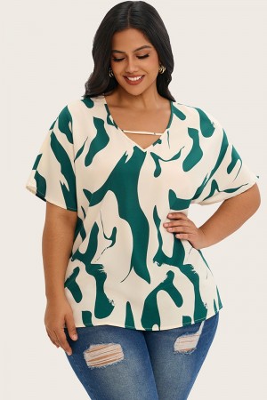 Blusa plisada con manga de murciélago y estampado gráfico verde16,99 €
