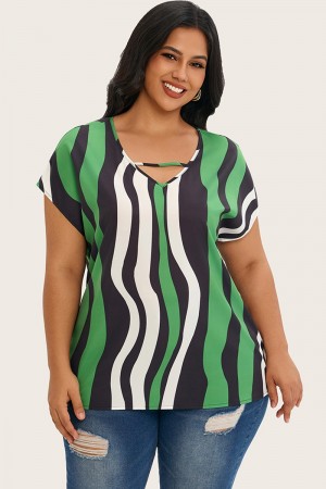 Camiseta verde con botones a rayas de talla grande24,99 €