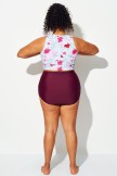 Traje de Baño Corto Rojo Vino Cintura Alta