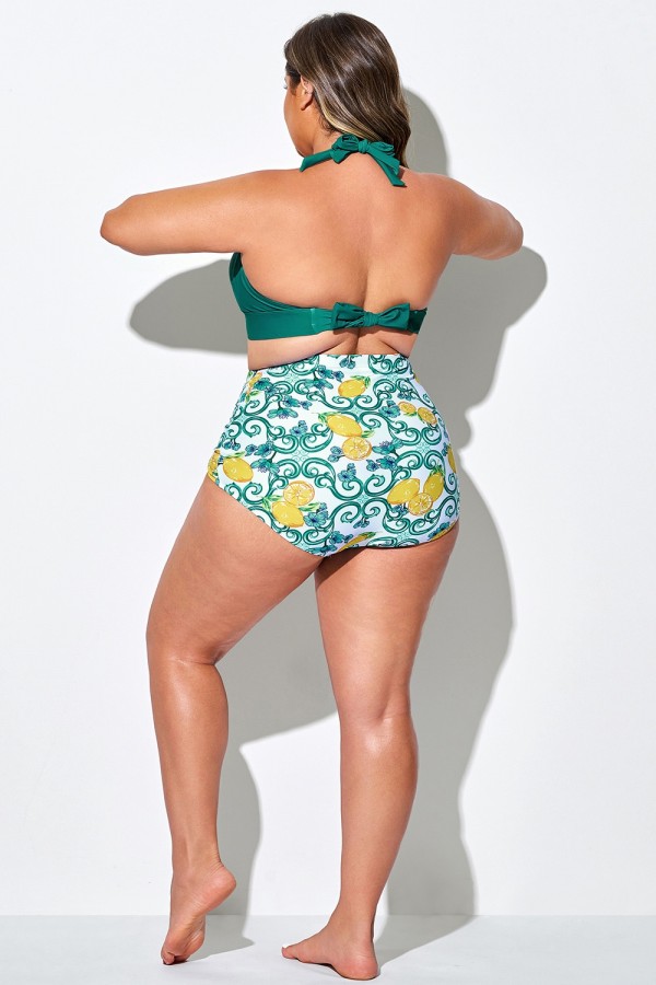 -15%REBAJATop de Tankini Manga Corta y Cuello Dividido con Hojas Estampado