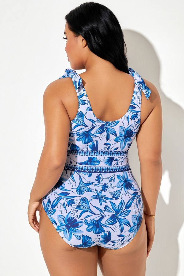 -17%REBAJATraje de Baño de Una Pieza Cuello Redondo con Polca Puntos Nudos y Floral Estampado