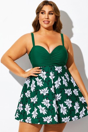 Traje De Baño Con Cuello En V Y Estampado De Rosas Verdes De Talla Grande42,99 €