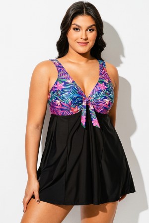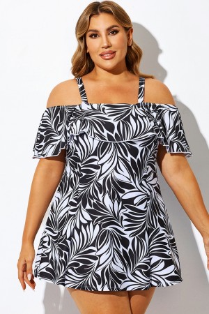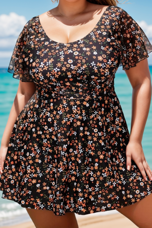 REBAJAVestido de Baño de Talla Grande Negro Recortado con Floral Estampado