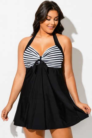Vestido De Baño Blanco Y Negro De Talla Grande V-Cuello Con Ajuste Bloque De Color38,99 €