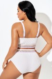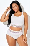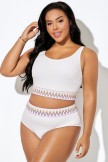 Top de bikini blanco con dobladillo de patrón curvo en forma de V