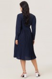 Vestido Azul Marino V-cuello Estilo Jersey de Manga Larga con Nudo Frontal