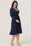• Con pliegues que caen con gracia desde la cintura, mangas completas capturadas por un puño ancho y un escote en V que termina en un nudo, este vestido va del escritorio a la cena o a un evento especial con facilidad. Puede acentuarse con un collar de perlas y unos tacones de aguja. Cambia tus accesorios y lleva este vestido de talla grande de la oficina a una cita nocturna en un abrir y cerrar de ojos.