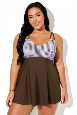 Elegante traje de baño con tirantes dobles y estampado de cuadros marrones37,99 €