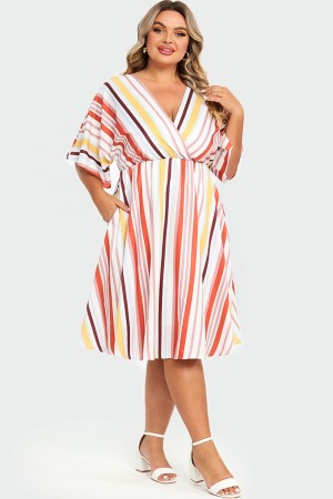 Vestido Maxi Color V-cuello de Manga Dolman a Rayas