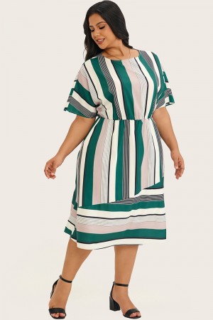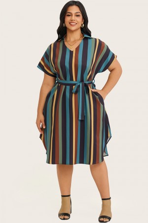 Vestido midi de talla grande con cinturón y manga dolman a rayas34,99 €
