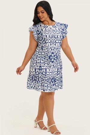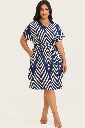 Vestido midi azul marino con cinturón y manga dolman con estampado geométrico35,99 €